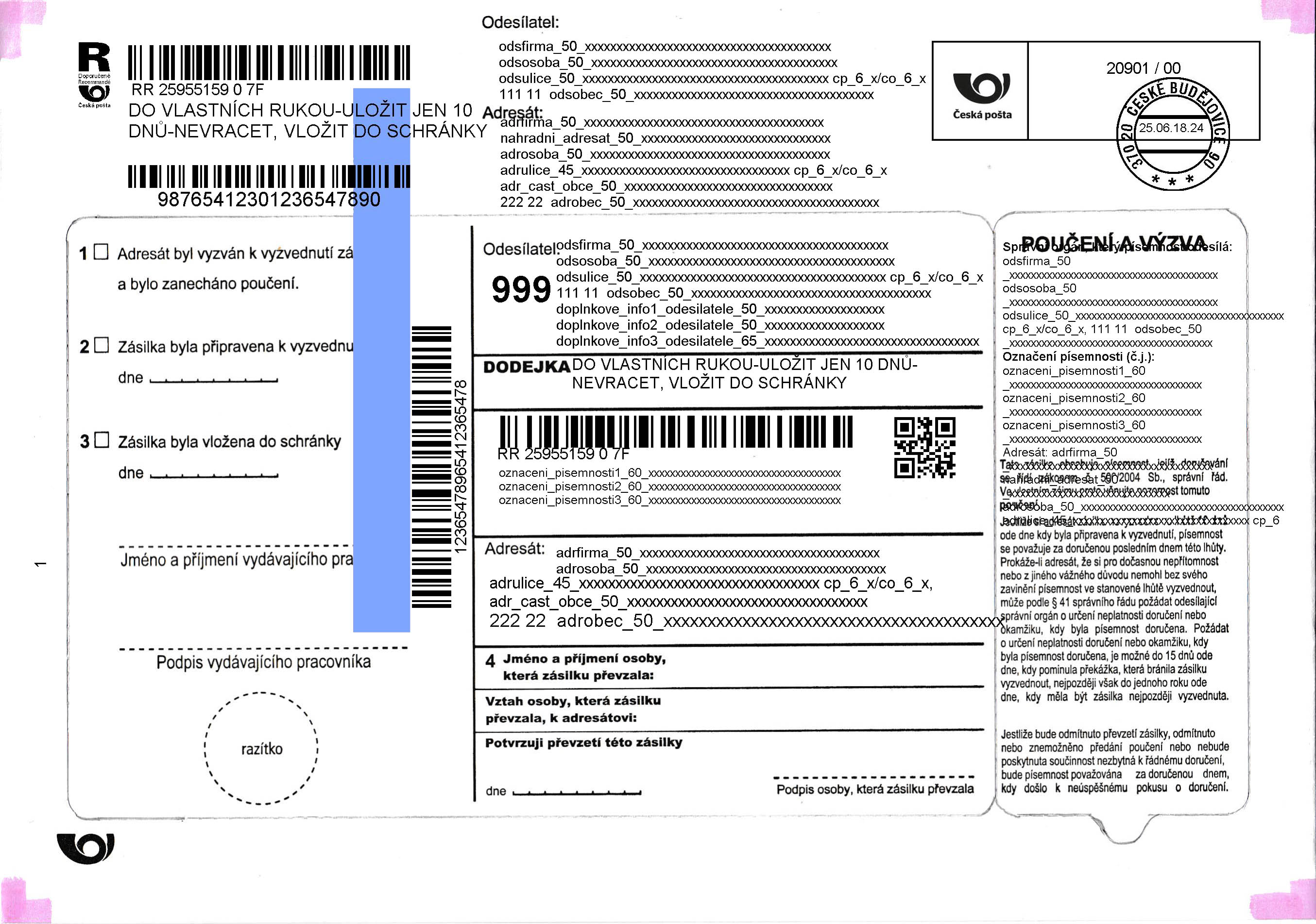 - Barevný potisk obálky v ceně, seznam přijaté pošty a další...